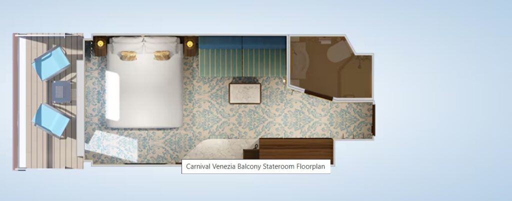 Two twin beds (convert to king). Sofa and coffee table. Desk and seat. Full bathroom with shower. Ample closet space. Private balcony with patio chairs and table.